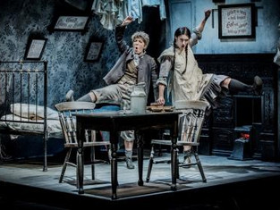 Medcalf and Thavoris provide many artful touches, such as the gaslamp lighters with glimmering ends to their poles like glow-worms, who later turn into guardian angels (as we see from woolly wings sewn on their backs), and the Dew Fairy as a morning milkman from ‘Dew Farm Dairy’. The magnified home inside the Witch’s lair is a superb idea and brilliantly achieved.