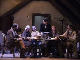 I could quibble about minor incongruities (Rodolfo has to be middle-aged throughout the story, as he can’t rejuvenate instantly to fit the imagined flip back in time; the attic is full of chairs which enable it to convert into the Café Momus for the middle acts, but you wonder at first whether, if the lads were so short of fuel for the winter, they didn’t just burn them), but it’s a cinematic way of telling the story, and you have to suspend disbelief as you see it on stage.